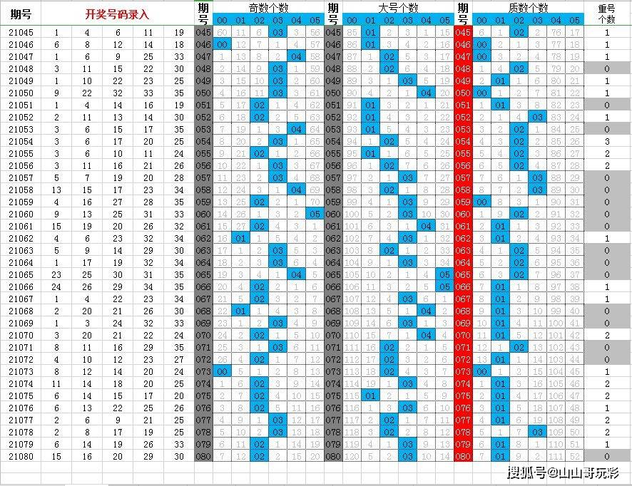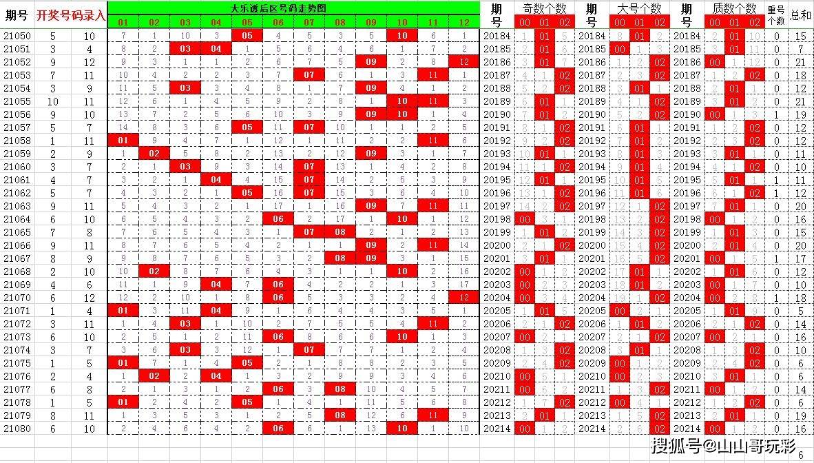 大乐透21080期开奖号码:15,16,20,29,30+06,10。大乐透21080期奇大质号码个数开出个数是2-3-1。预计21081期奇数号码个数可能会开2-3个,大号号码个数可能开2-3个,质数号码个数可能开1-2个。
