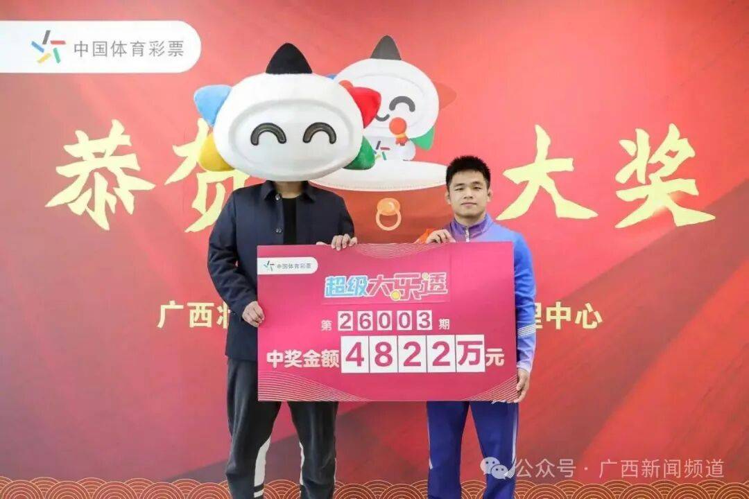 1月12日,中奖者贝先生(化姓)现身广西体彩兑奖大厅领取属于他的幸运大奖,十五届全国运动会自由式摔跤57公斤级冠军邹万豪现场为其颁奖,共同见证这份坚持与幸运交织的时刻。