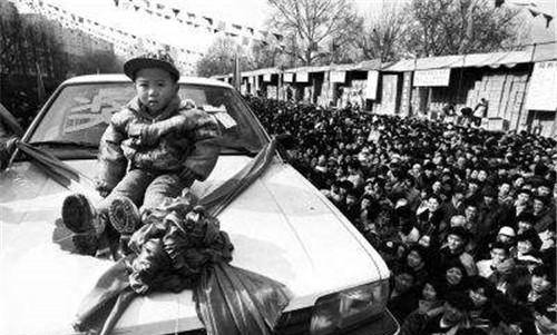 实际上,90年代的小轿车,足以称得上是线年,首批彩票的一等奖获得者温国斌,正是因为那2000元彩金,才办了个风风光光的婚礼。于是,当“2元”与小轿车结合起来的时候,就已经成为了欲望的催化剂。主办方为了造势,不但会将轿车、冰箱等高价值奖品直接摆在领奖台上吸引群众,还会邀请当红明星登台造势,场面一度十分火热。