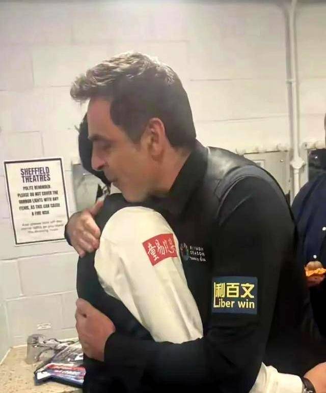 推开更衣室门的那一刻,奥沙利文正坐在那儿擦球杆,还没反应过来就被徒弟抱了个满怀。
